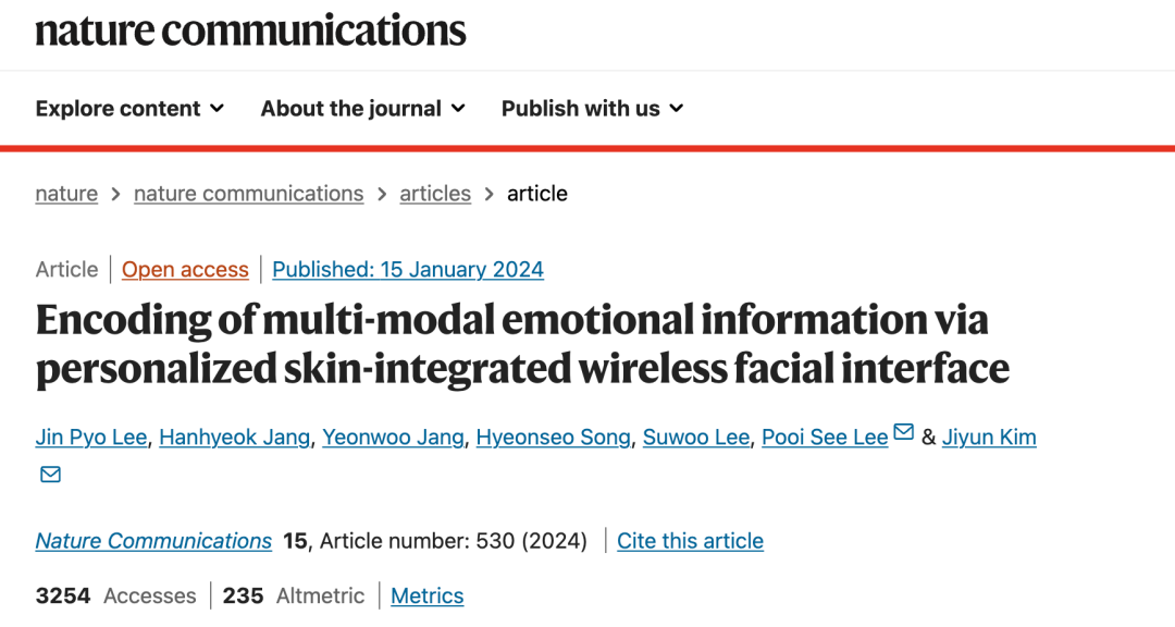 相關(guan) 研究論文以“Encoding of multi-modal emotional information via personalized skin-integrated wireless facial interface”為(wei) 題,已發表在科學期刊 Nature Communications 上。