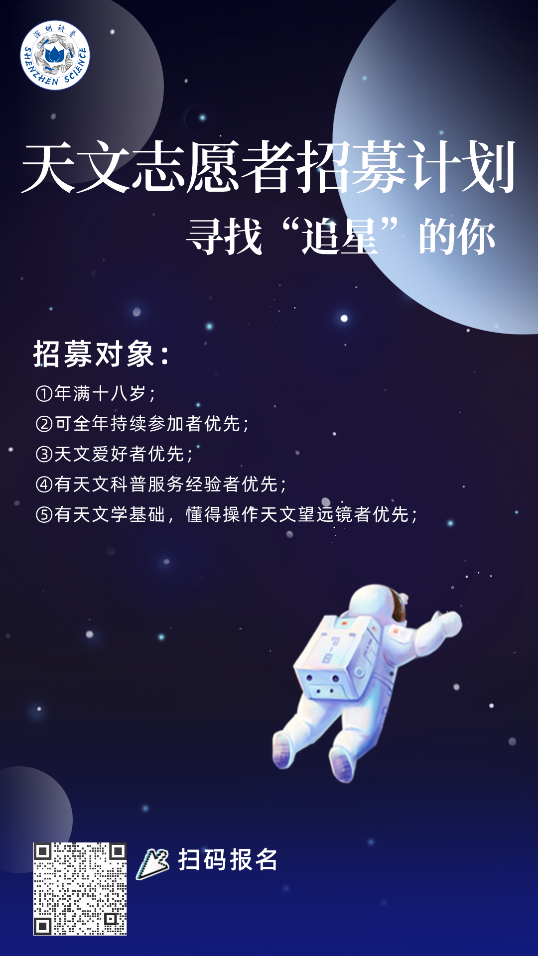 3. 服務內(nei) 容:在誌願服務時間內(nei) ,協助深圳科普工作人員開展天文科普活動,如現場簽到、秩序維護、方向指引和協助安全監管等。