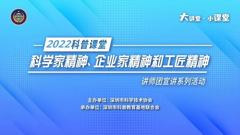由深圳市科學技術協會(hui) 、廣西科學技術普及傳(chuan) 播中心(小博士報)主辦,深圳市科普教育基地聯合會(hui) 承辦的“2022科普課堂”——科學家精神、企業(ye) 家精神和工匠精神講師團基層宣講活動在深圳市科學館舉(ju) 辦科普講座。此次宣講活動旨在貫徹落實《全民科學素質行動規劃綱要(2021—2035年)》,充分利用科普資源助推“雙減”工作,以“送科普上門”服務提高公眾(zhong) 終身學習(xi) 能力,通過榜樣力量加強未成年人思想道德建設。