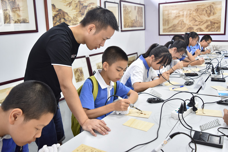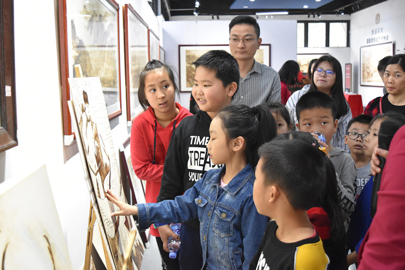 同學們欣賞烙畫藝術:
