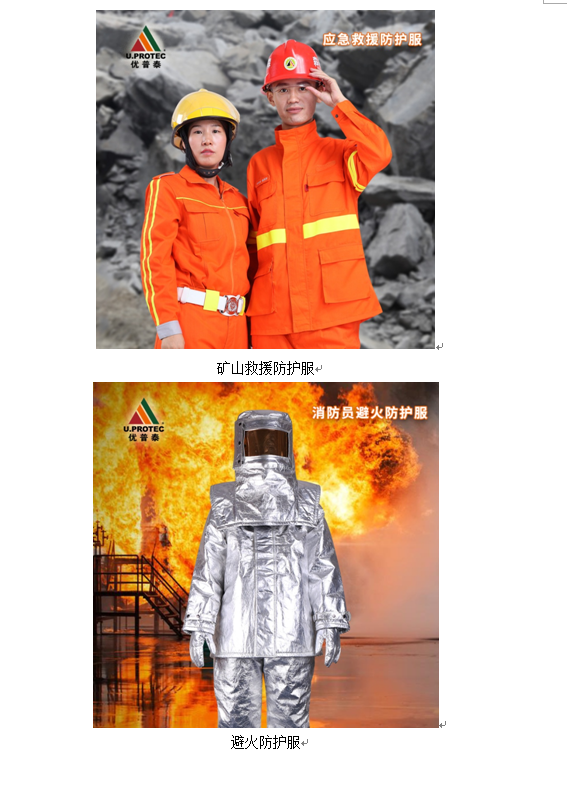消防員滅火防護服、救援服、避火服、隔熱服,電弧防護服,焊接服,熔融金屬飛濺防護服,酸堿防護服,防靜電服,防射線服、隔離衣,防蜂服、空軍服、賽車服、智能防護服等個體防護應急裝備。