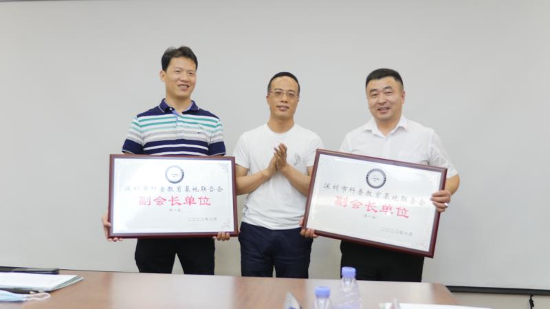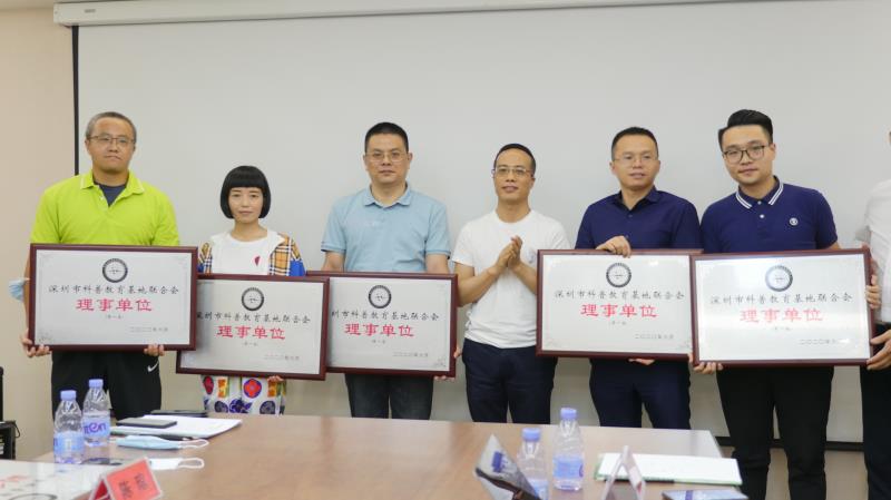 深圳市科普教育基地聯合會會長李才聖為新增會員單位頒發牌匾。