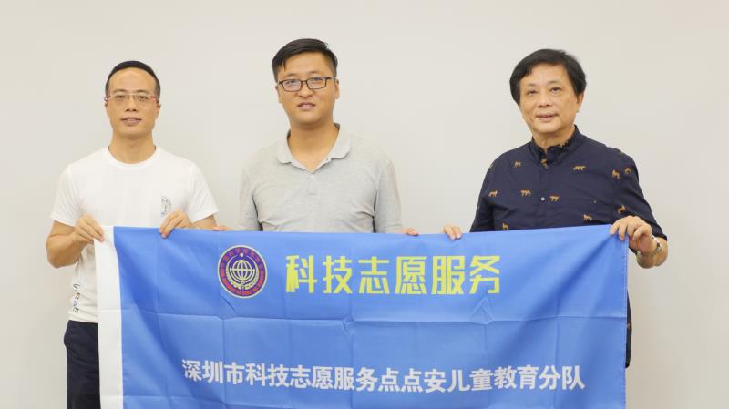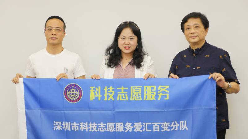 深圳市科普教育基地聯合會監事單協和為各理事單位授予深圳市科技誌願服務分隊旗幟。