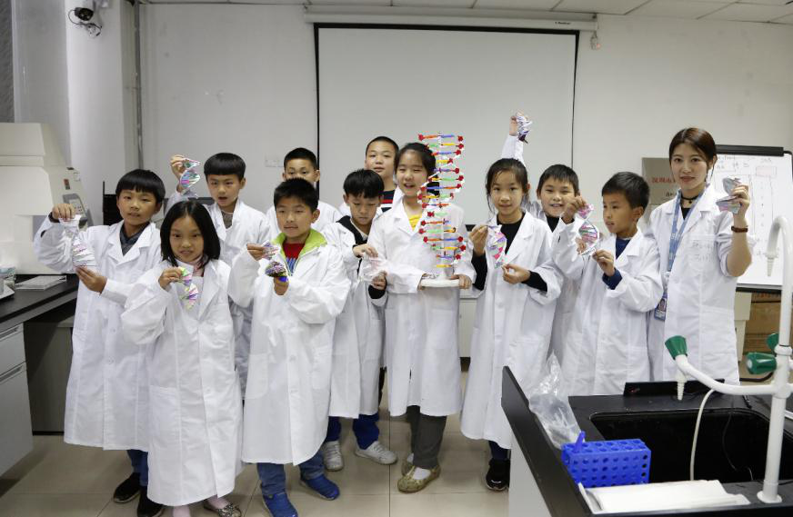 通過參觀講解、科普講座、體驗趣味實驗等方式,讓學生能認識和接觸基因科學。學生可以通過參觀和老師的講解初步了解基因科技,甚至親自動手體驗生物科學實驗。另外,學院還與學校合作,開展學期進校課程,為學生們搭建和設計以基因科學為核心的生物科學類科普課程。