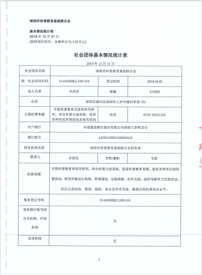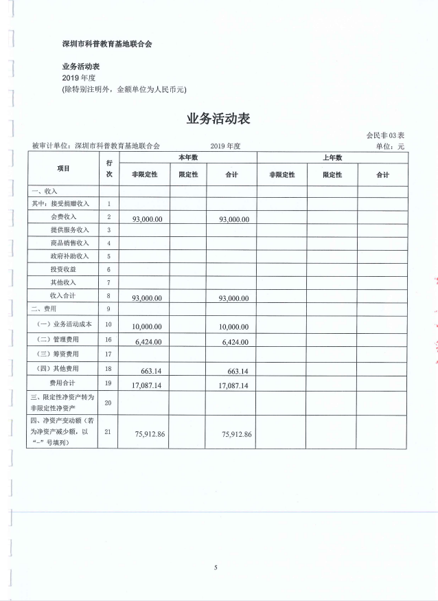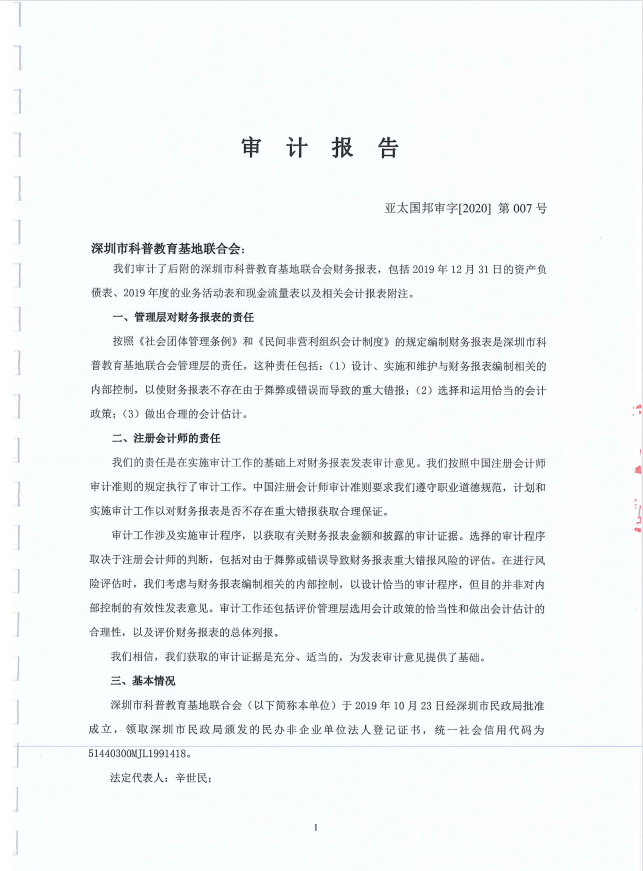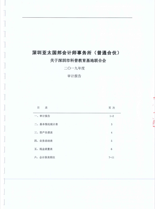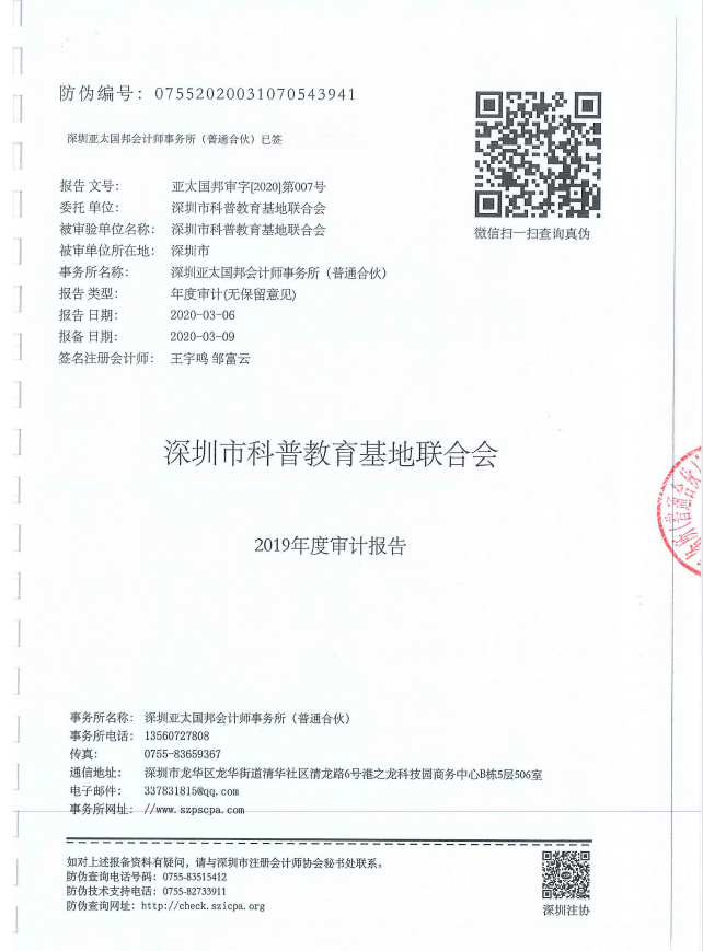 深圳市科普教育基地聯合會(hui) 2019年審計報告