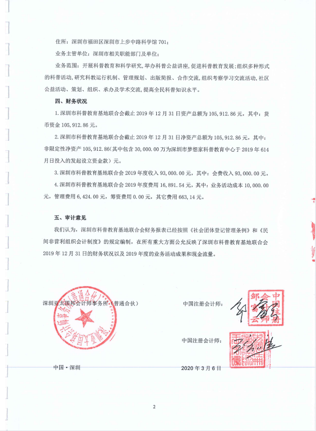 深圳市科普教育基地聯合會2019年審計報告