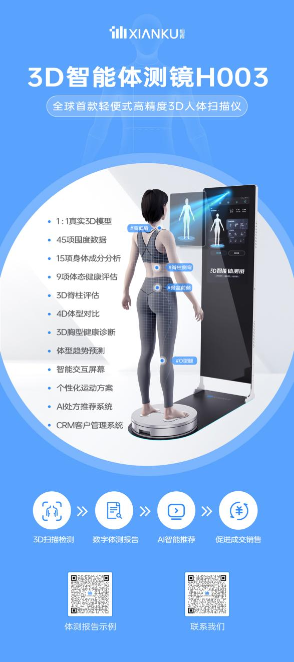 仙庫擁有自研3D智能量體(ti) 間、3D智能體(ti) 測鏡、3D智能足測儀(yi) 等一係列3D人體(ti) 掃描硬件產(chan) 品,結合獨家3D體(ti) 征自適應測量算法、AI製衣算法、淨體(ti) 預估算法等技術優(you) 勢,提供體(ti) 型診斷、健康塑形、服裝定製、人體(ti) 工學等領域的一站式人體(ti) 數據服務解決(jue) 方案。