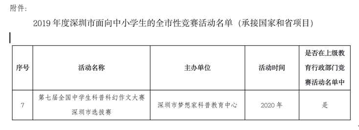 情況說明:本屆大賽得到深圳市教育局的支持,詳見《深圳市教育局關於公布2019年度麵向中小學生的全市性競賽活動(國家和省項目)的通知 》作為第七項活動。
