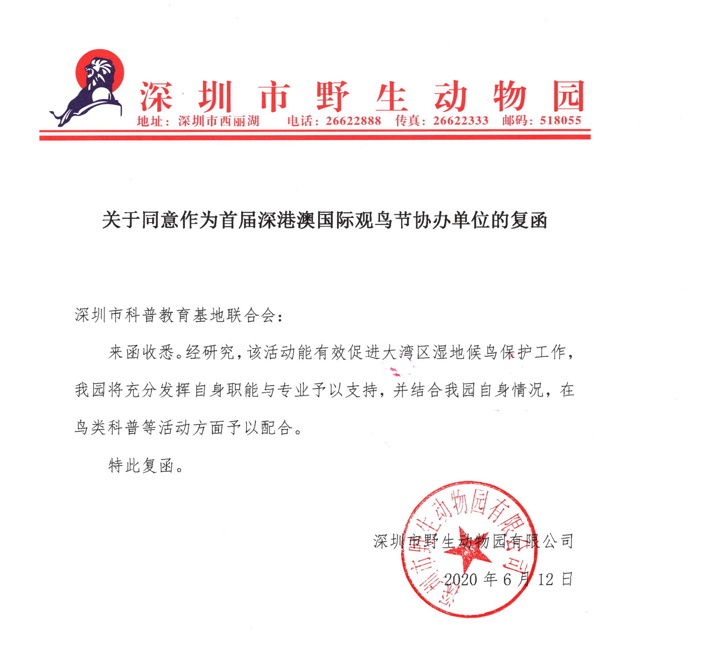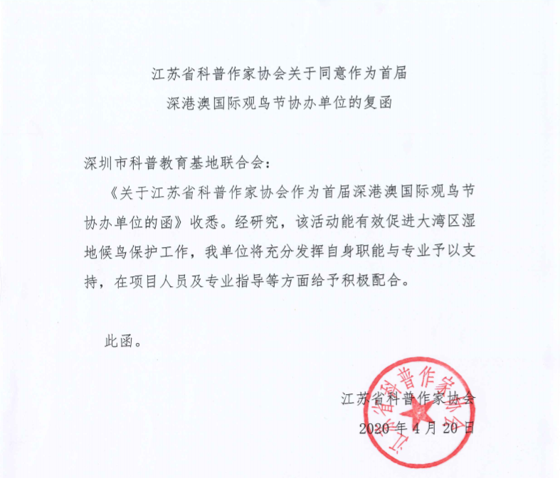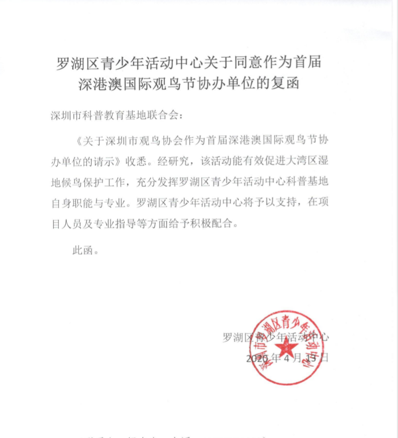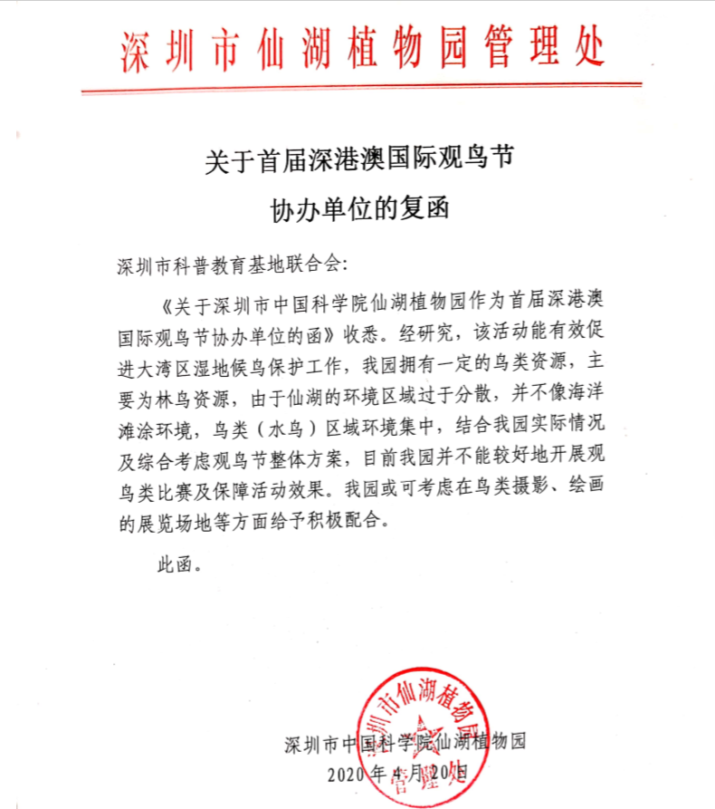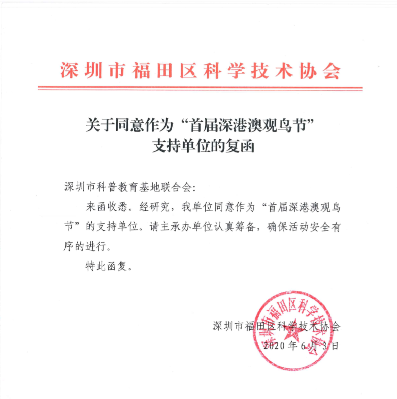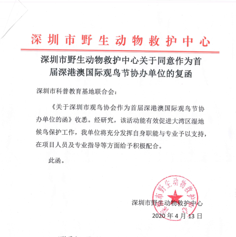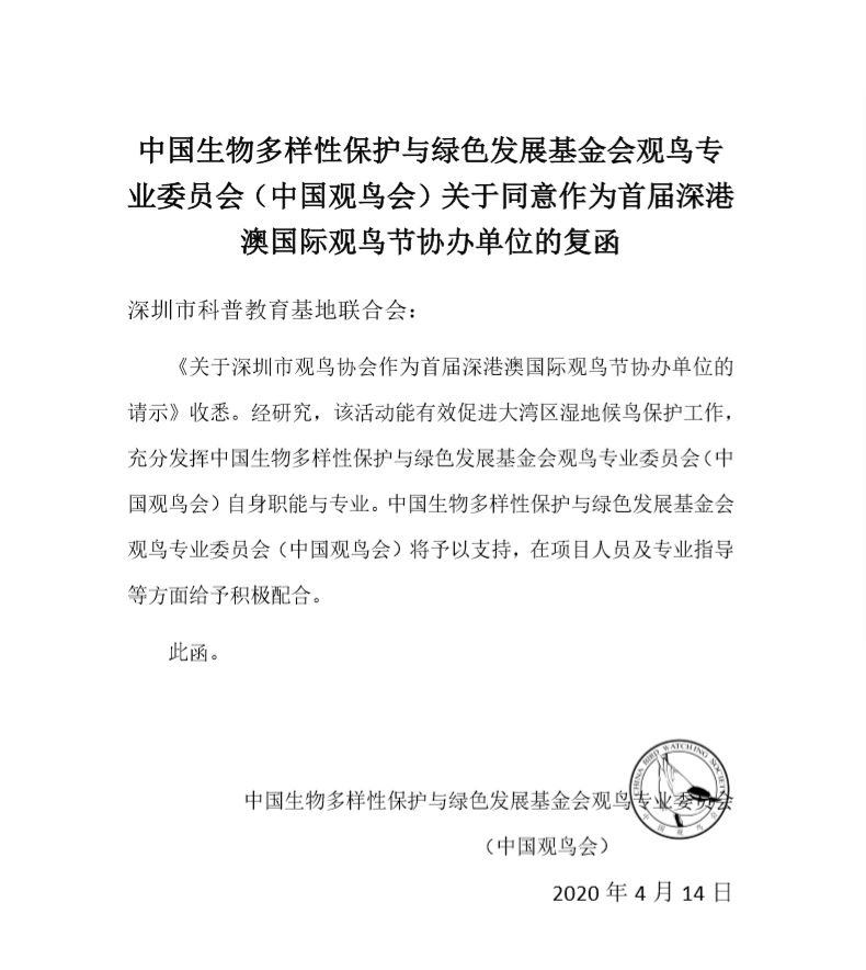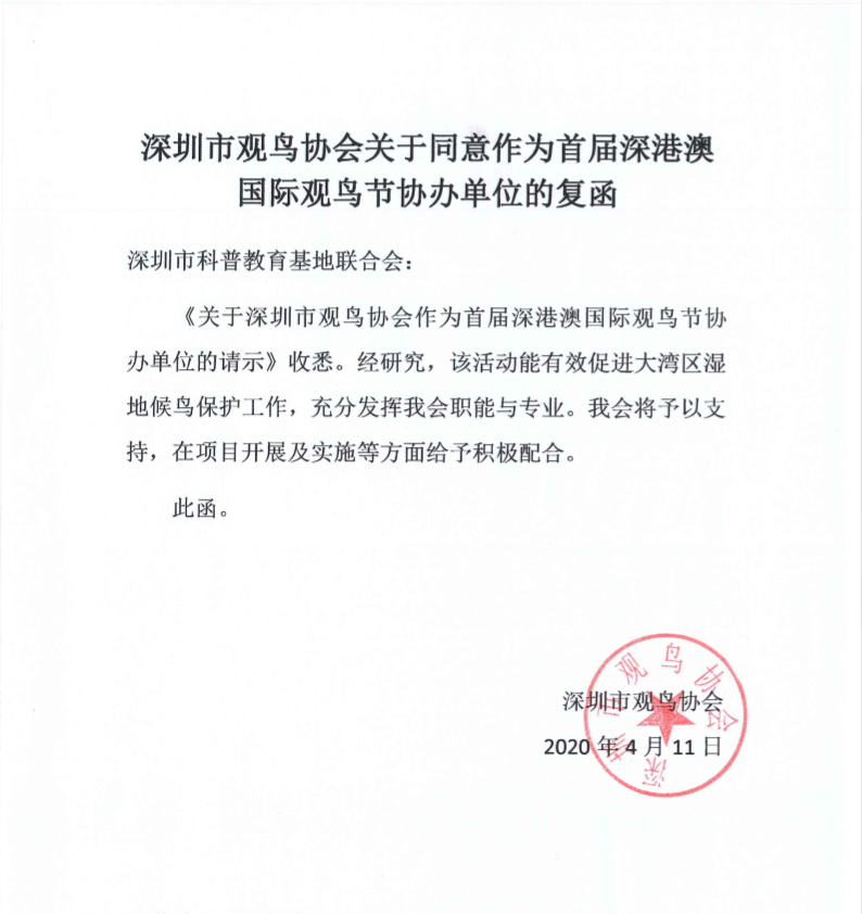 深圳市觀鳥協會(hui) 複函