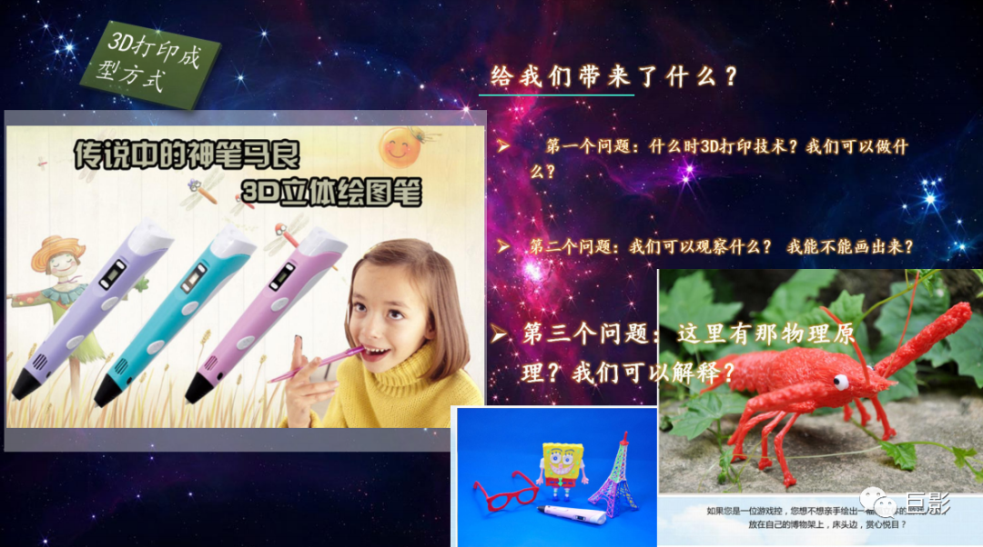 科普活動,巨影通過現場講解3D打印星空体育官网入口网站、操作演示等形式,讓學生更好的了解和關(guan) 注3D打印等科學星空体育官网入口网站,營造了科學創新氛圍,還為(wei) 提高推薦3D打印創新創客教育的發展奠定了一定的基礎。