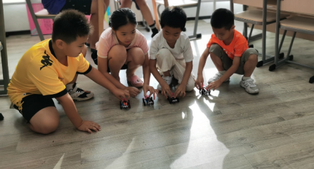 以創造製作的活動形式,學習電學的基本電路,熟悉各種電子元件,讓孩子們親手製作直接的風力小車,了解每個零配件,了解電路連接,動手製作,並能夠利用基本電子元件獨立設計完成簡單電子作品。還來了個風力小車競賽,孩子們把做好的小車放到起跑線上出發,也是展示總計的勞動成果,展示自己的科學精神、創新意識和實踐能力。