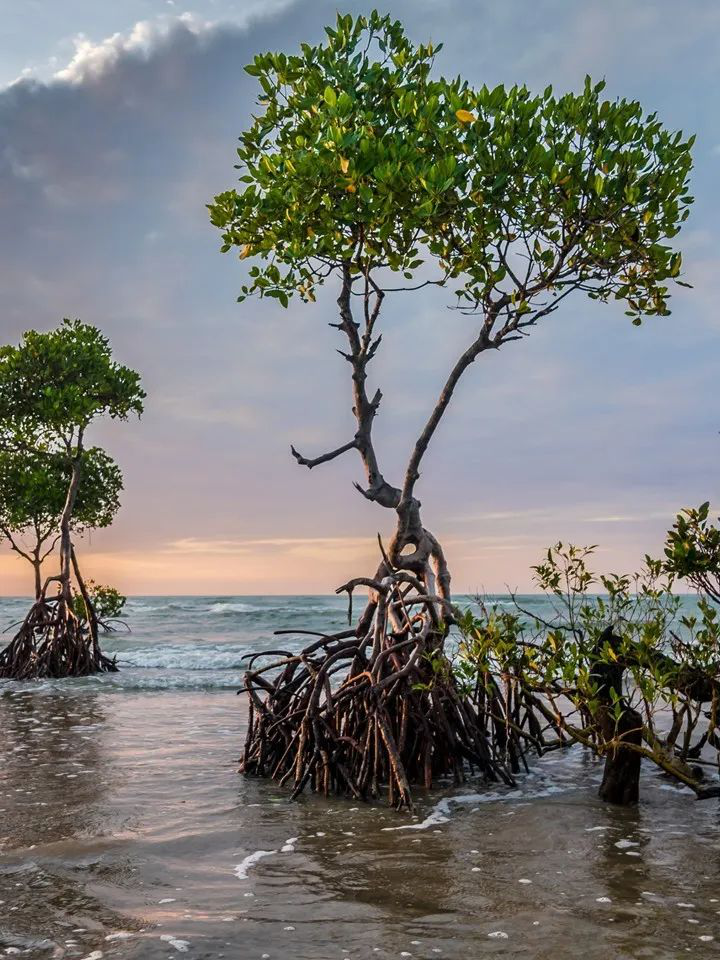 茂密的樹枝和發達的根係,使得紅樹林能夠穩穩紮根於灘塗之中,單個的紅樹植物看起來矮小且細弱,但一旦聚集成片,其能量就得到加持。