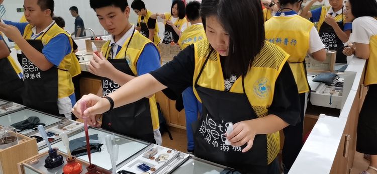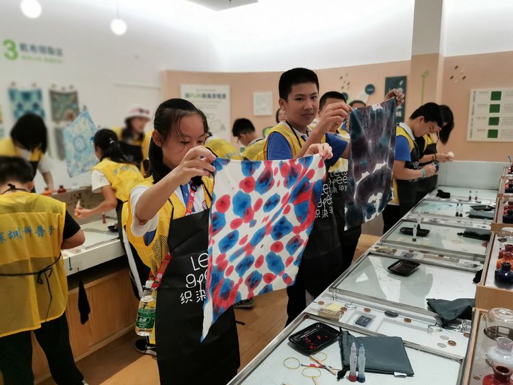 同學們(men) 來到了全國首個(ge) 紡織工業(ye) 旅遊科普基地——Let's Green織染印遊城。