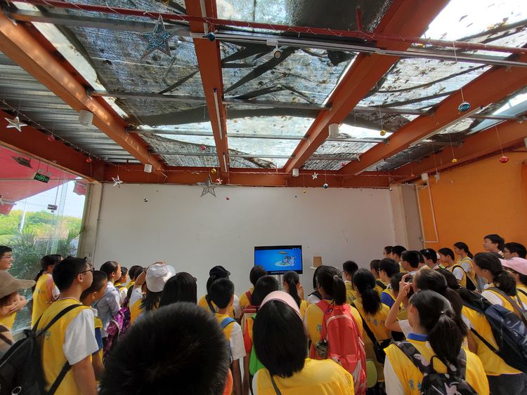 同學們(men) 正在認真的觀看科普短片,然後在科普老師的帶領下,同學們(men) 來到了屋頂天然農(nong) 場。