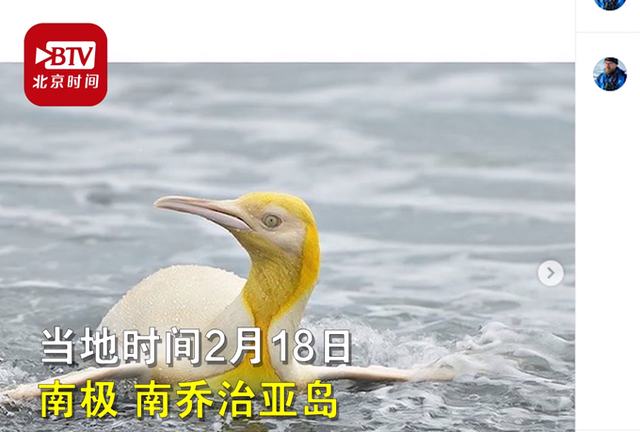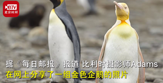 據《每日郵報》報道,比利時攝影師Adams在網上分享了一組金色企鵝的照片。照片是他在2019年科考時意外拍攝到。外媒稱這是有史以來發現的首隻金色王企鵝。