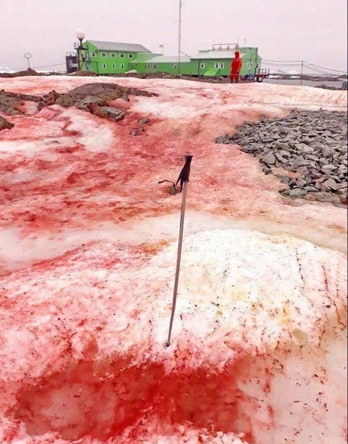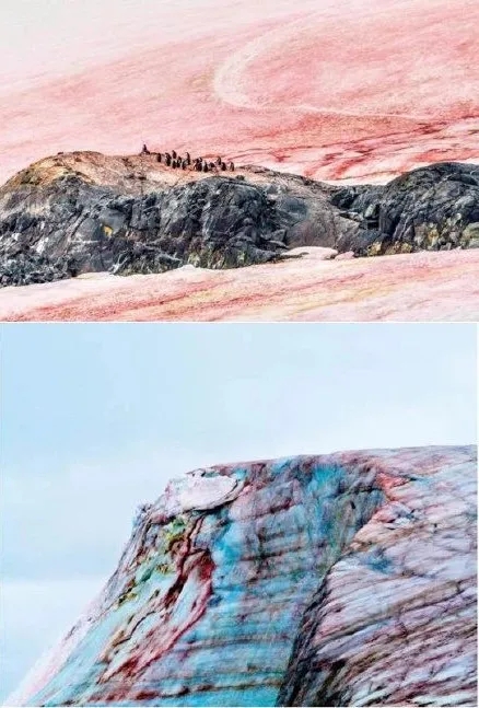 近日,一組拍自南極科考站附近的照片引發關(guan) 注。照片裏南極的雪竟變成了紅色和綠色。