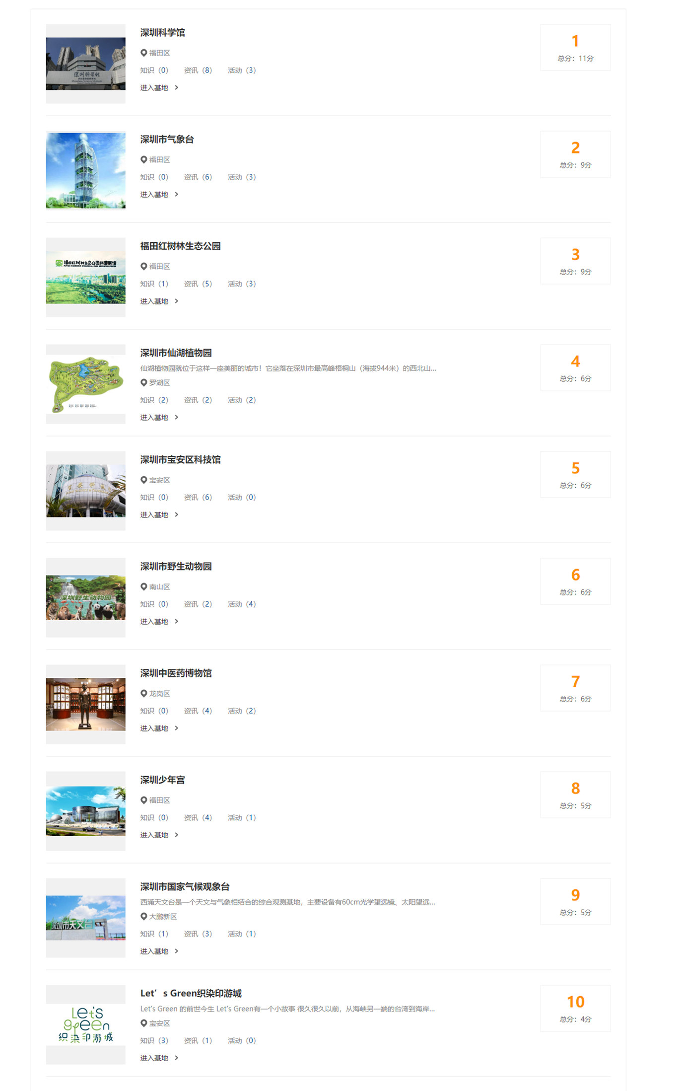 龍崗區科普教育基地科普活動指數排名(20210420)