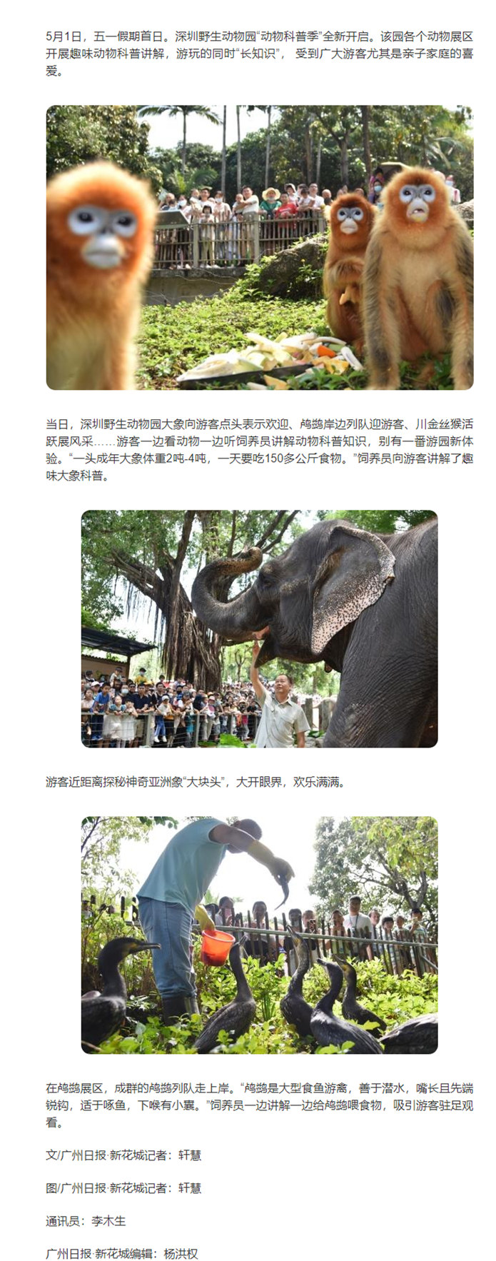 五一假期首日,深圳野生動物園動物科普講解吸引遊客