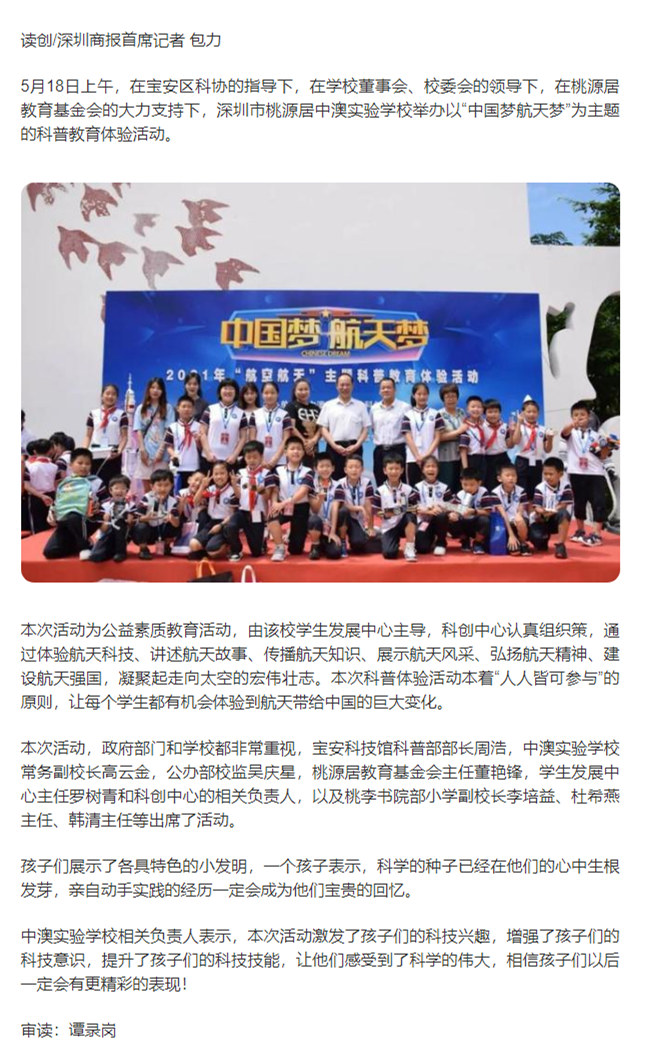 中澳實驗學校舉辦青少年科技創新大賽暨航空航天科普體驗活動