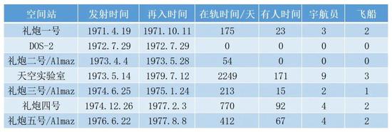禮炮—1號空間站是前蘇聯首個(ge) 太空站,也是人類曆史上首個(ge) 太空站,於(yu) 1971年4月19日發射升空。蘇聯曾想借由聯盟—10號運送太空人進入禮炮1號,不過由於(yu) 泊接機件問題,聯盟—10號並沒有成功。隨後,蘇聯派出第二艘太空船聯盟—11號與(yu) 太空站對接,宇航員在太空站內(nei) 逗留了23天。可惜,在聯盟—11號返回地球的時候,返回艙的均壓均衡閥過早開啟,3位宇航員因此而身亡。