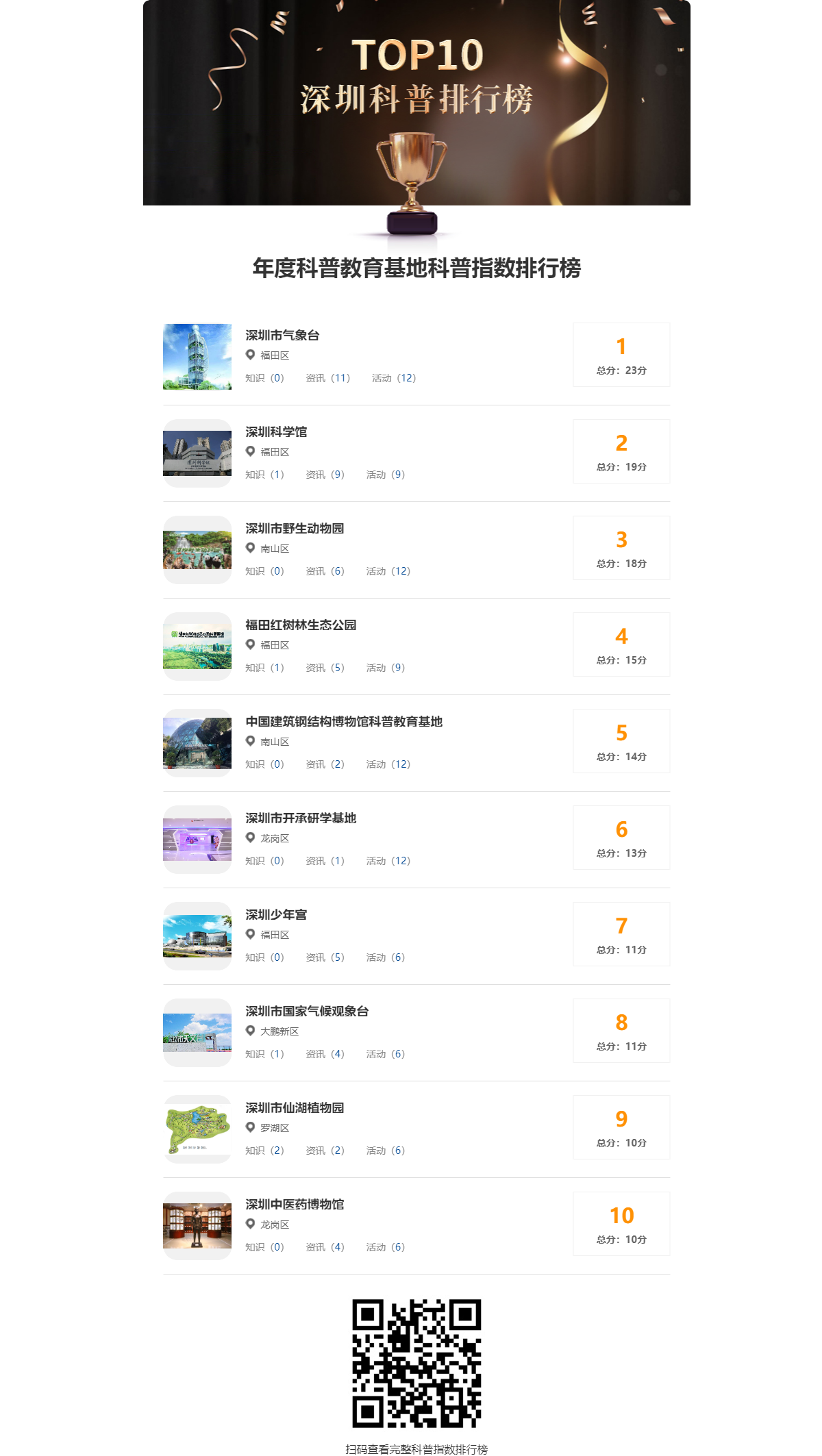 7月份深圳市科普基地排行榜新鮮出爐