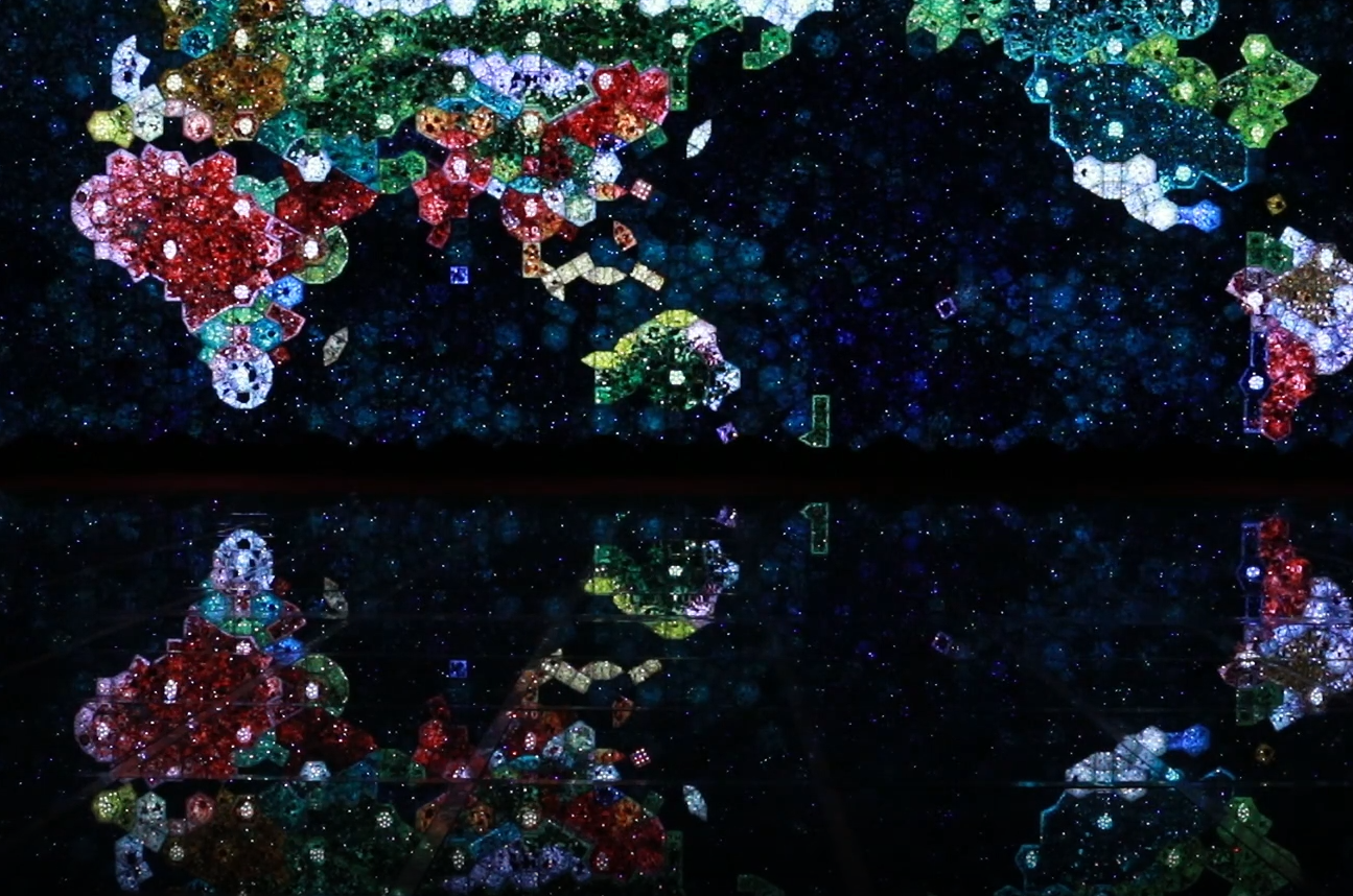 吉尼斯世界紀錄寶石牆總投資達3.3億(yi) 元,於(yu) 2020年1月正式對外開放,長21.75米,高6.43米,麵積139.85平方米,曆時3年收集170多種來自世界各地的寶石,總重量超15噸,折合7500萬(wan) 克拉,共計200 多萬(wan) 顆原石。聯袂中央美術學院設計大師及著名空間大師陳武共同打造,配備業(ye) 內(nei) 頂級的聲光電設,沉浸式體(ti) 驗珠寶的魅力,是吉尼斯官方認證的世界上展示麵積最大的、鑲嵌珠寶原材料種類最多、最全的寶石文化壁畫。寶石來自於(yu) 一帶一路沿線三十多個(ge) 寶石原產(chan) 國,見證著世界珠寶文化的交流與(yu) 融合。