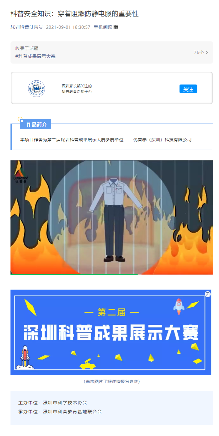 第二屆深圳科普成果展示大賽作品:科普安全星空体育官网入口网站:穿著阻燃防靜電服的重要性