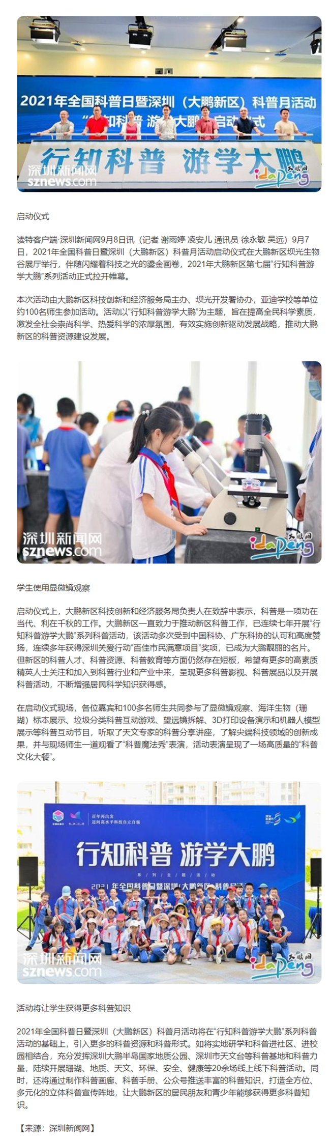 2021年全國科普日暨深圳(大鵬新區)科普月活動正式啟動,為(wei) 居民送上“科普文化大餐”