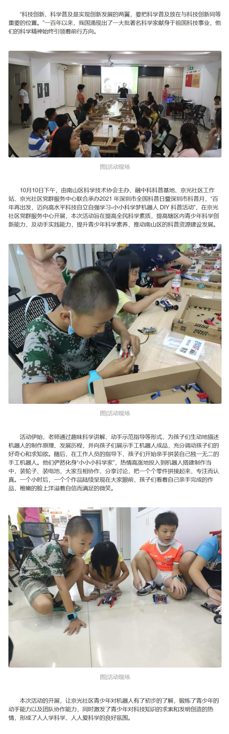 2021年深圳市科普月“小小科學夢”機器人DIY科普活動圓滿舉(ju) 辦