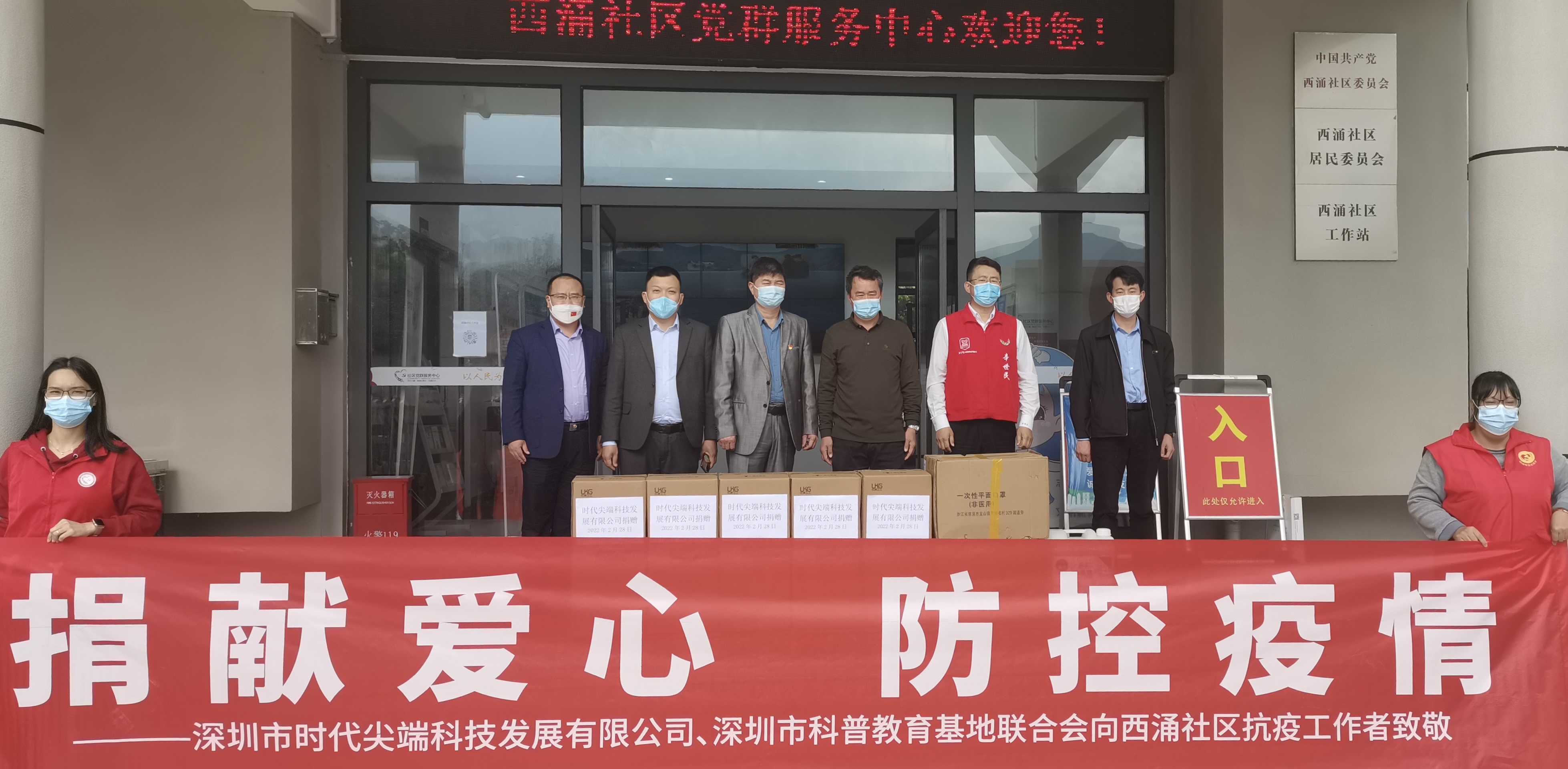 2月28日下午16時,為(wei) 助力西湧社區疫情防控工作的順利展開,讓奮戰在一線的防疫人員有更好的防疫保障,深圳市科普教育基地聯合會(hui) 、深圳市時代尖端科技發展有限公司共同向大鵬新區西湧社區捐贈5台醫用級空氣淨化器、 KN95口罩2000個(ge) 以及消毒液等防疫物資。也借此表達攜手深圳人民共克時艱的信念和決(jue) 心。