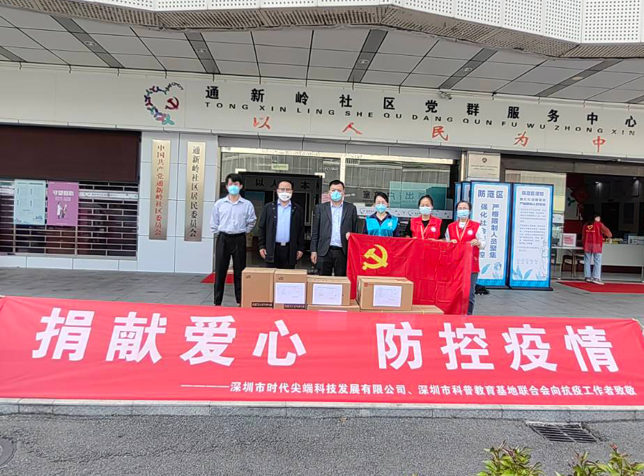 為(wei) 助力疫區疫情防控工作的順利展開,讓奮戰在一線的防疫人員有更好的防疫保障。3月13日,深圳市科普教育基地聯合會(hui) 、深圳市時代尖端科技發展有限公司共同向福田區華強北街道通新嶺社區、福強社區捐贈KN95口罩2000個(ge) 、隔離防護服50套、優(you) 康衛士防疫消毒空氣淨化器2台、艾利特醫用防護麵罩200個(ge) 、艾利特醫用隔離眼睛50副等防疫物資。另外,向寶安區石岩街道龍騰社區捐贈優(you) 康衛士防疫消毒空氣淨化器5台、艾利特醫用防護麵罩200個(ge) ,借此表達攜手深圳人民共克時艱的信念和決(jue) 心。