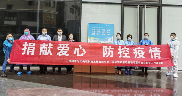 3月23日,深圳市科普教育基地聯合會(hui) 聯合深圳市時代尖端科技發展有限公司向福田區沙頭街道沙嘴社區捐贈KN95口罩、醫用消毒空氣淨化器等防疫物資,以實際行動踐行社會(hui) 組織責任與(yu) 擔當,為(wei) 抗擊疫情貢獻一份力量。