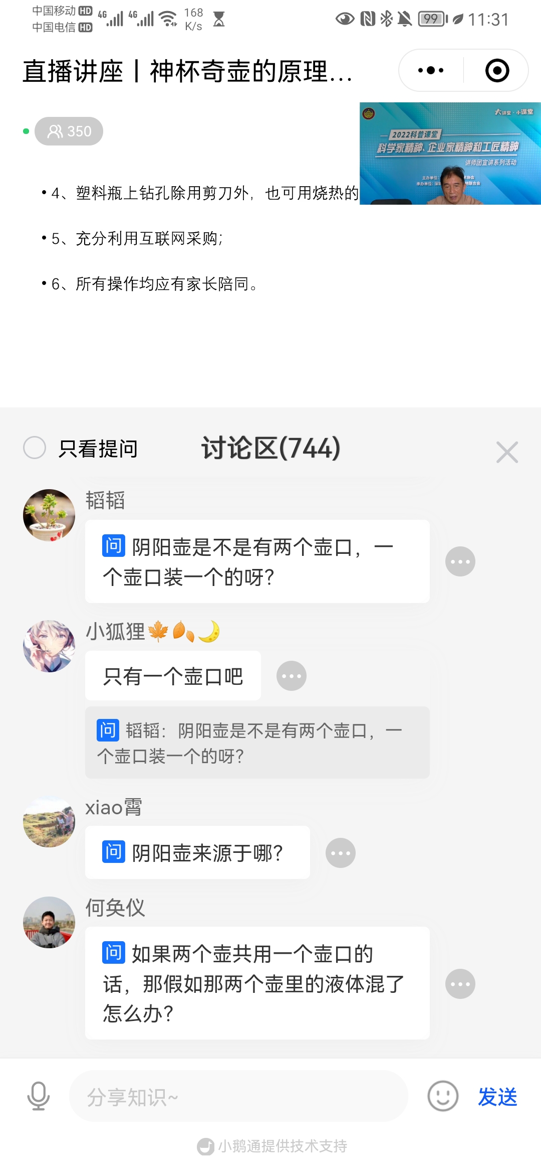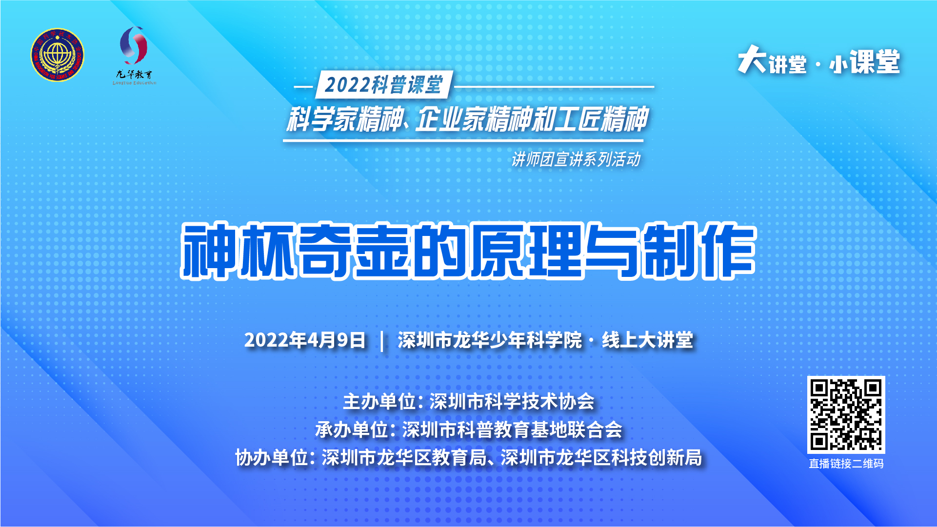 4月9日上午,由深圳市科學技術協會(hui) 主辦、深圳市科普教育基地聯合會(hui) 承辦、龍華區教育局和龍華區科技創新局協辦的2022年龍華“定製”科普講堂——科學家精神、企業(ye) 家精神和工匠精神講師團基層宣講活動“雲(yun) 上科普行”第七講走進深圳市龍華少年科學院·線上大講堂,給同學們(men) 帶來了一堂趣味杯壺科普星空体育官网入口网站講堂。深圳科普平台對活動進行了全程直播,線上伍佰餘(yu) 名大小朋友觀看並參與(yu) 了直播互動。