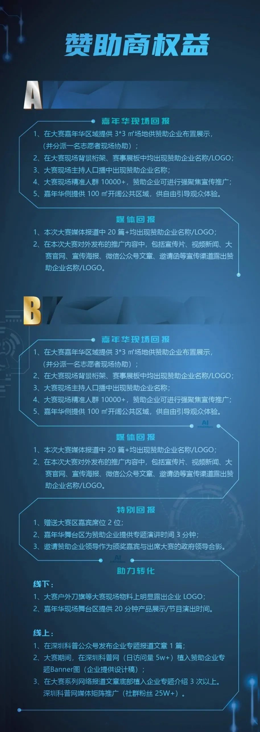 深圳市人工智能科技企業(ye) 、科普教育相關(guan) 單位(包括但不限於(yu) :智能家居、智能通信、智能教育、智能醫療、智慧金融、航天航空,星際探索、生物技術等相關(guan) 領域)。