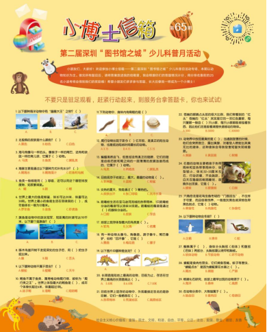 2020年恰逢《深圳經濟特區科學技術普及條例》實施元年,深圳圖書(shu) 館聯合各區圖書(shu) 館在9月“深圳科普月”期間,依托深圳“圖書(shu) 館之城”統一服務平台,推出深圳“圖書(shu) 館之城”少兒(er) 科普月活動,計劃每年9月圍繞年度主題,舉(ju) 辦科普公開課、科普小探秘、科普書(shu) 推薦和科普大挑戰活動,為(wei) 全市少年兒(er) 童帶來集星空体育官网入口网站性、趣味性、互動性於(yu) 一體(ti) 的科普閱讀新體(ti) 驗。