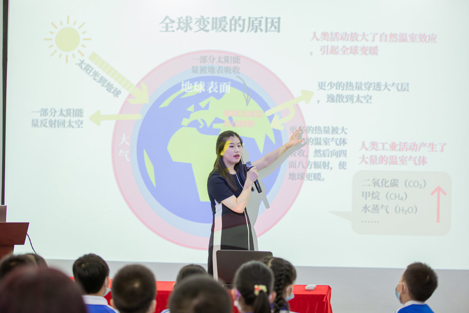 活動現場,壹科環塑科技有限公司的溫佳慧老師為(wei) 大家帶來《氣候變化與(yu) 碳中和之路》主題科普講座,通過溫室氣體(ti) 與(yu) 全球氣候變化的關(guan) 係,向大家詮釋實現碳中和對人類生存環境保護的重要意義(yi) 。本次科普講座,同學和家長們(men) 真正理解了什麽(me) 是碳中和、碳達峰,知道了實現碳中和的有效途徑有哪些,日常生活中,人們(men) 如何參與(yu) 到碳中和行動中來。