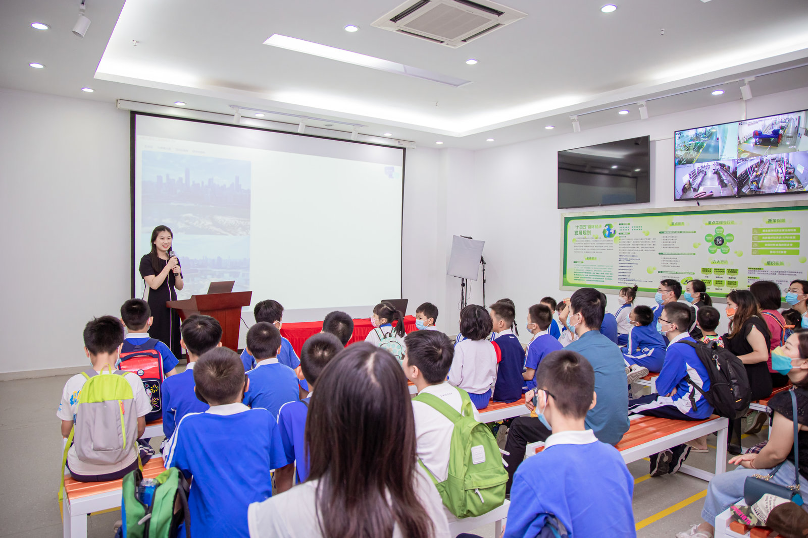 科普基地參訪環節,同學們(men) 觀賞了《敬畏塑料》宣傳(chuan) 片,詳細了解塑料的發展曆程和科技應用,普及了塑料的不當處置對生態環境造成的危害。