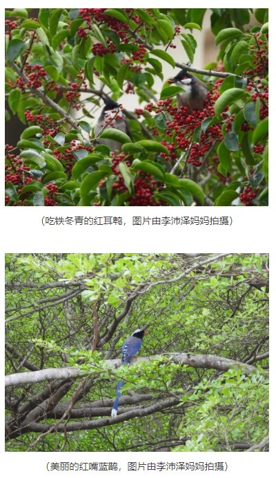 活動隊伍沿著梅沙內(nei) 湖出發,一變尋找立體(ti) 綠化元素,一邊認識各種沿途見到的動植物。層次分明的濕地植物、在枝頭吃鐵冬青紅果子的紅耳鵯、大小白鷺的區別,長尾巴的紅嘴藍鵲、會(hui) 捉蟲子的再力花、先開紅花再開白花的木芙蓉等等,都讓孩子和家長覺得趣味非凡,給大家留下了深刻的印象。