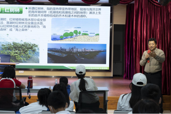 活動第一站,來到了翠竹街道綜合文體(ti) 服務中心,由徐華林老師為(wei) 我們(men) 主講“碳達峰,碳中和”專(zhuan) 題科普講座。徐老師是廣東(dong) 內(nei) 伶仃福田國家級自然保護區高級工程師。徐老師以紅樹林的形成、紅樹林生態係統等方麵為(wei) 切入點,通過現場宣講、視頻播放等多種方式,深入淺出地為(wei) 同學們(men) 解答了什麽(me) 是碳中和以及紅樹林生態係統的相關(guan) 問題,著重闡釋了紅樹林裏的“雙碳”星空体育官网入口网站。