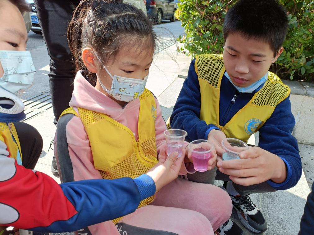 研學導師還為(wei) 孩子們(men) 帶來一堂生動有趣的實驗課“會(hui) 變色的花青素”。顏色也會(hui) 變魔法嗎?請小朋友跟隨老師一起來重新認識我們(men) 生活中的顏色吧。
