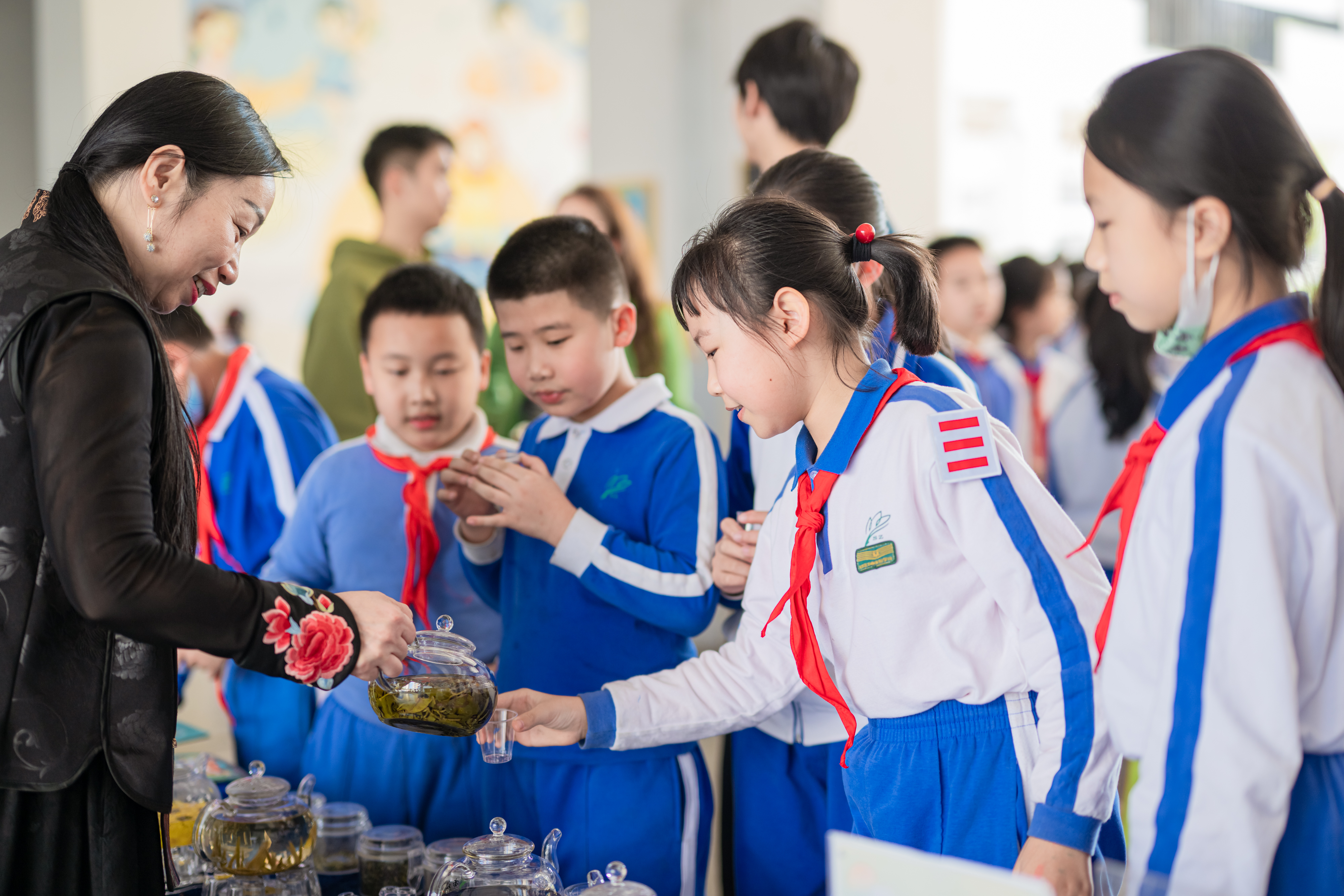 在茶文化體(ti) 驗區,同學們(men) 在識茶、賞茶、品茶中,領悟不一樣的茶藝魅力。自己動手製作陶泥茶壺,感受中國傳(chuan) 統陶藝文化。