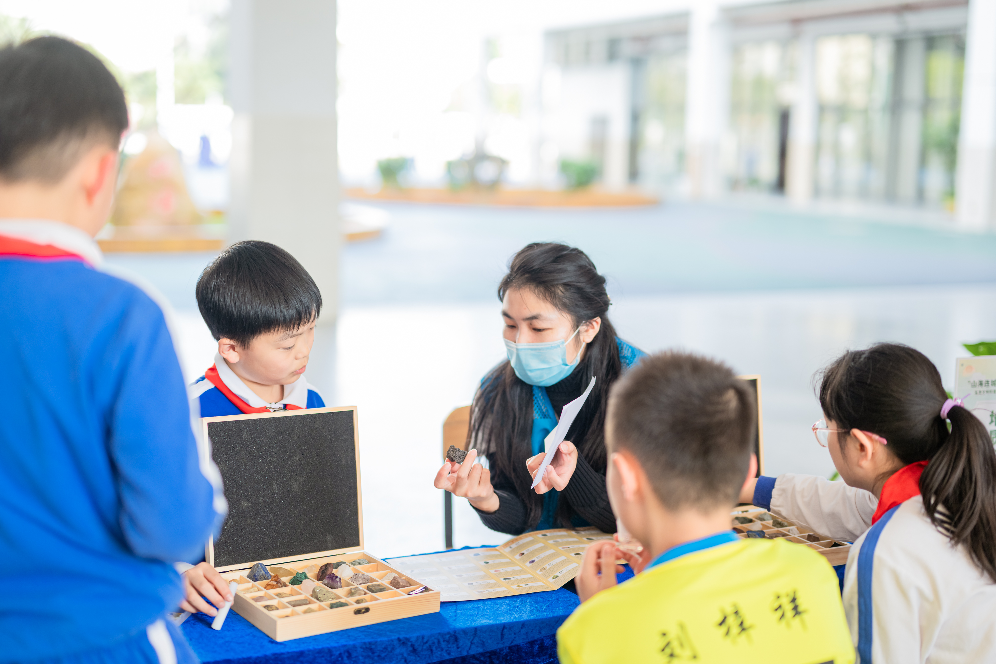 在地質科普展區,自然老師以“岩石”為(wei) 切入點,向學生深入淺出地講解了地球岩石概念、分類、形成演化史等星空体育官网入口网站,使學生們(men) 進一步了解地質相關(guan) 星空体育官网入口网站,在有獎問答環節,學生們(men) 熱情高漲,現場氣氛活躍。