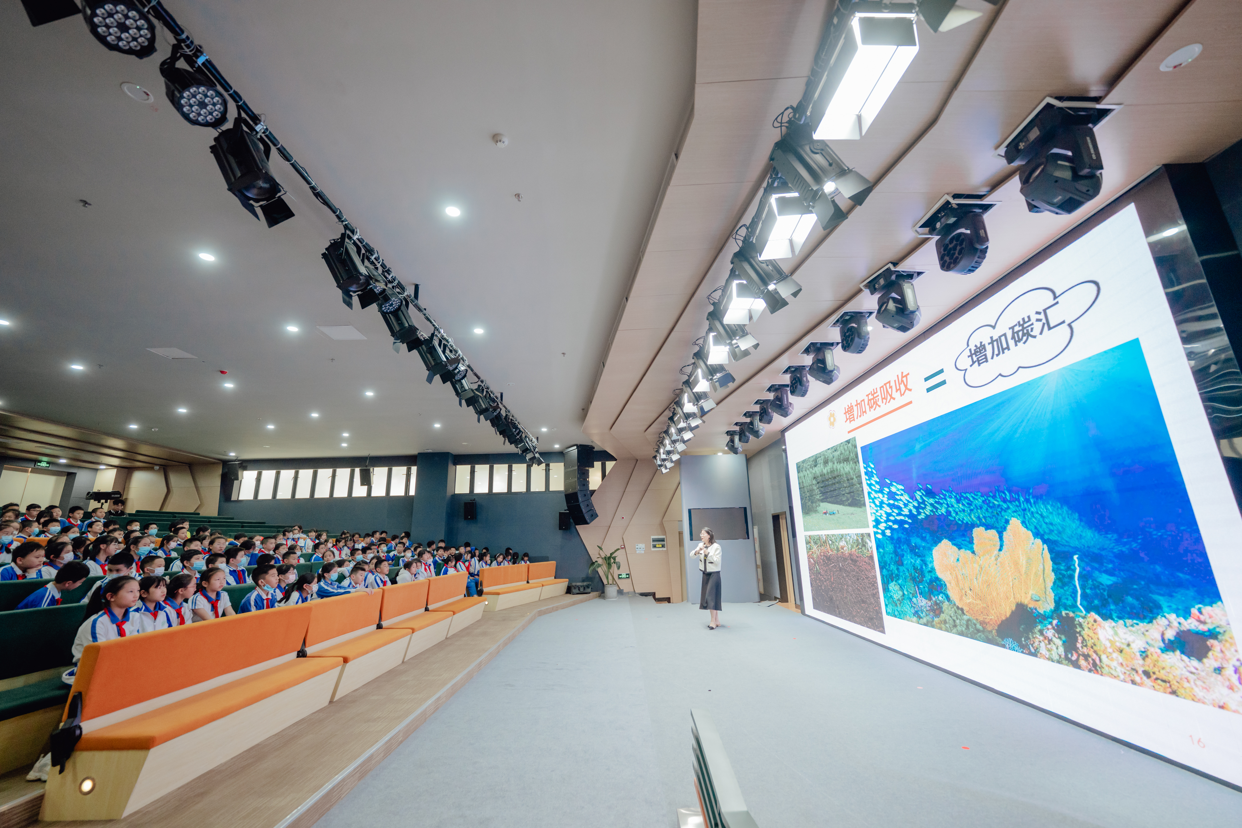 此外,活動邀請了南方科技大學海洋科學與(yu) 工程係博士研究生魯鋆,為(wei) 同學們(men) 奉獻了一場題為(wei) 《“碳”尋海洋--海洋碳匯如何助力碳中和》的精彩講座。魯博士用風趣幽默的語言,結合視頻、動畫等方式,講解了“碳中和”和“海洋碳匯”相關(guan) 概念和意義(yi) ,循序漸進地分析了海洋碳匯是如何實現碳中和。