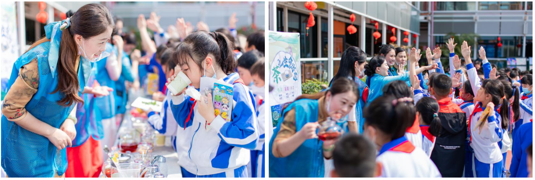 在茶文化體(ti) 驗區,同學們(men) 在識茶、賞茶、品茶中,領悟不一樣的茶藝魅力。茶,不僅(jin) 源於(yu) 自然和獻給我們(men) 世界的一杯綠色健康飲料,更體(ti) 現著尊重自然中人與(yu) 天地萬(wan) 物和諧共生的生態文明思想。