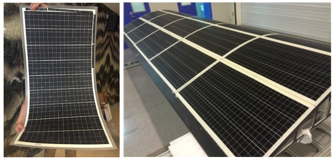 圖2. 柔性單晶矽太陽電池組件成功應用於(yu) 臨(lin) 近空間飛行器、光伏建築一體(ti) 化、車載光伏等領域。