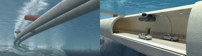 懸浮隧道是建設懸浮於(yu) 水中的一種大型跨海交通構築物。與(yu) 一般的海底隧道不同,懸浮隧道不埋置在海床底下,而是通過自身重力、浮力和錨固力懸浮在水中的管狀隧道。