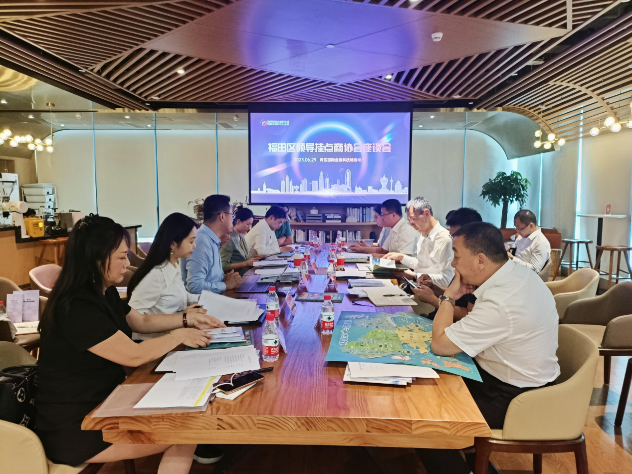 2023年6月29日下午,朱江副區長帶隊區教育局、區金融局、福田街道辦、區投推和企服中心負責同誌到深圳國際金融科技城7層召開區領導掛點商協會(hui) 座談會(hui) 。