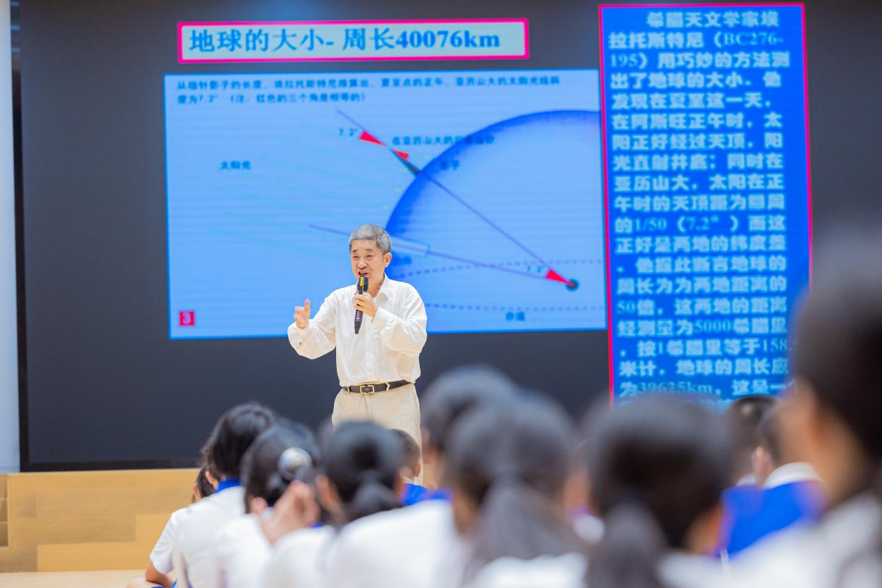 2023年9月22日下午,由深圳市科學技術協會(hui) 主辦,深圳市羅湖區科學技術協會(hui) 支持,深圳市青山綠水文化傳(chuan) 播有限公司承辦,深圳市羅湖未來學校協辦“共享山海·綠美深圳”2023年全國科普日暨深圳科普月係列活動之生態鵬城大講堂——《天文學中的幾何學》在深圳市羅湖未來學校報告廳順利舉(ju) 行。現場近200名師生參加。