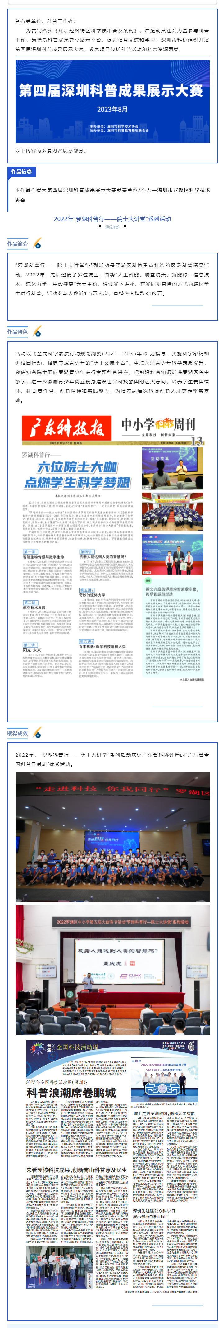 第四屆科普成果展示大賽 | 2022年“羅湖科普行——院士大講堂”係列活動