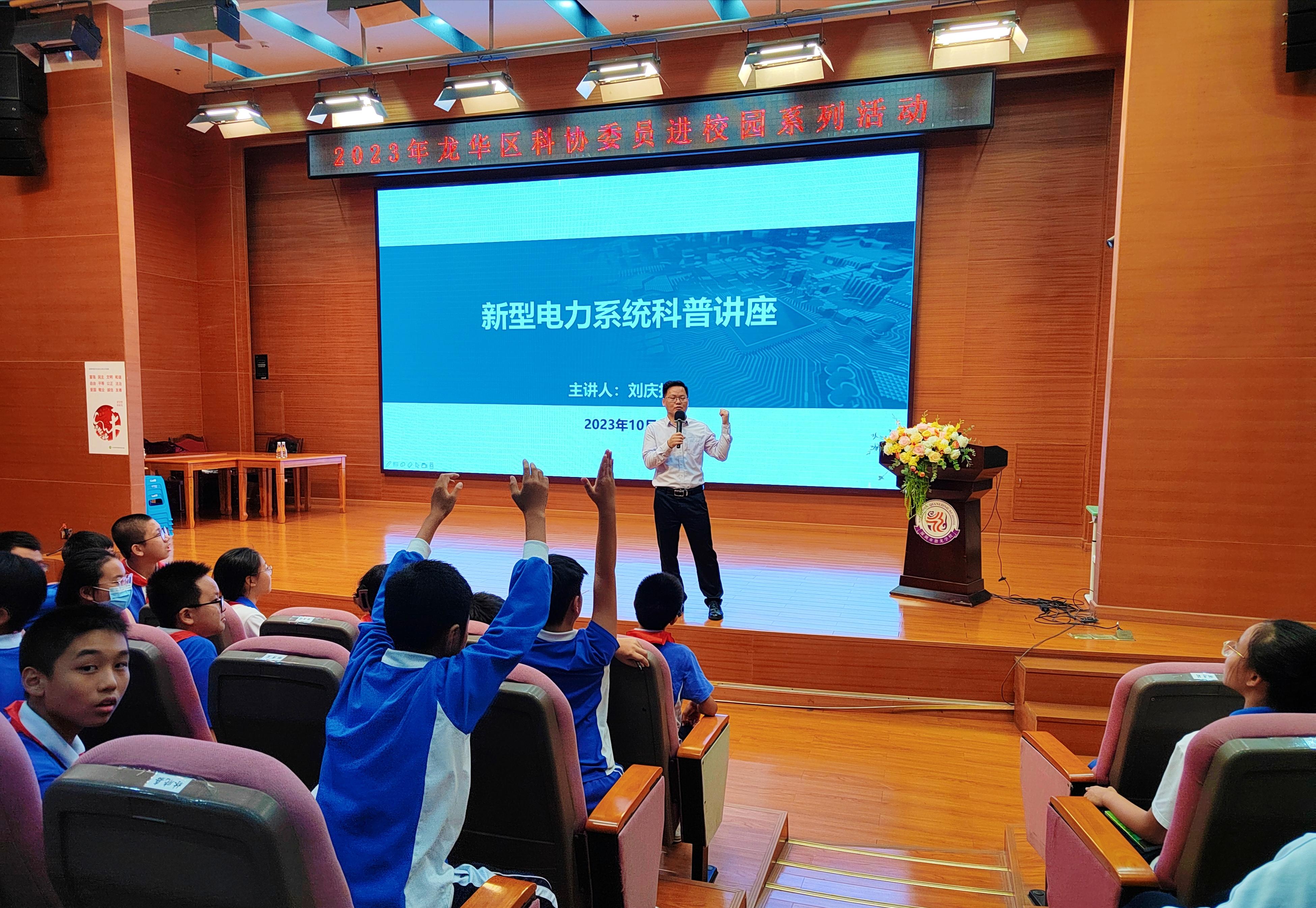 10月19日下午,龍華區科學技術協會(hui) 委員、深圳市國電科技通信有公司技術專(zhuan) 家、正高級工程師劉慶揚先生作為(wei) 主講嘉賓,為(wei) 深圳市龍華區潛龍學校帶來了一場題為(wei) 《新型電力係統》的精彩講座,活動現場吸引了250名學生共同聆聽。